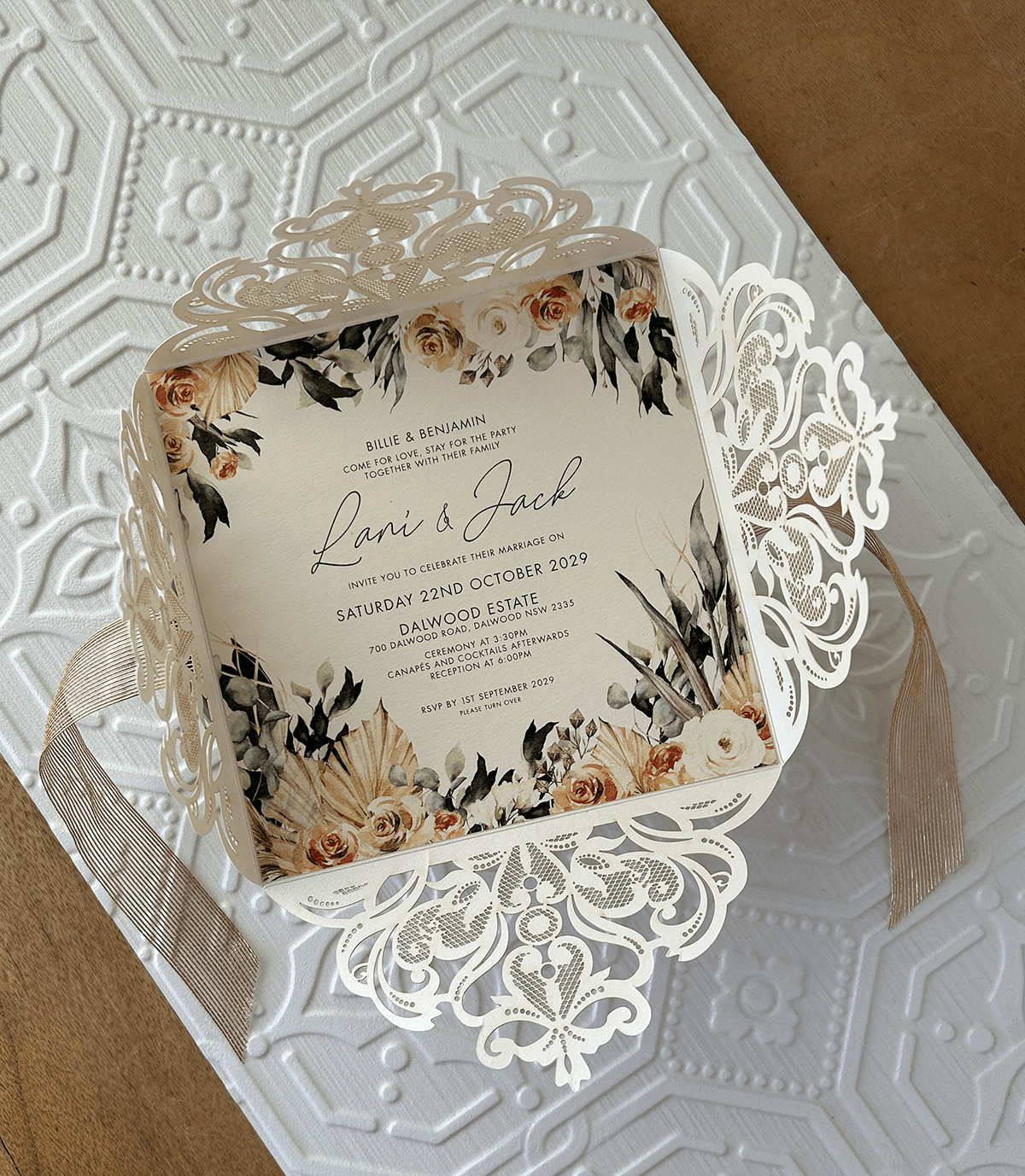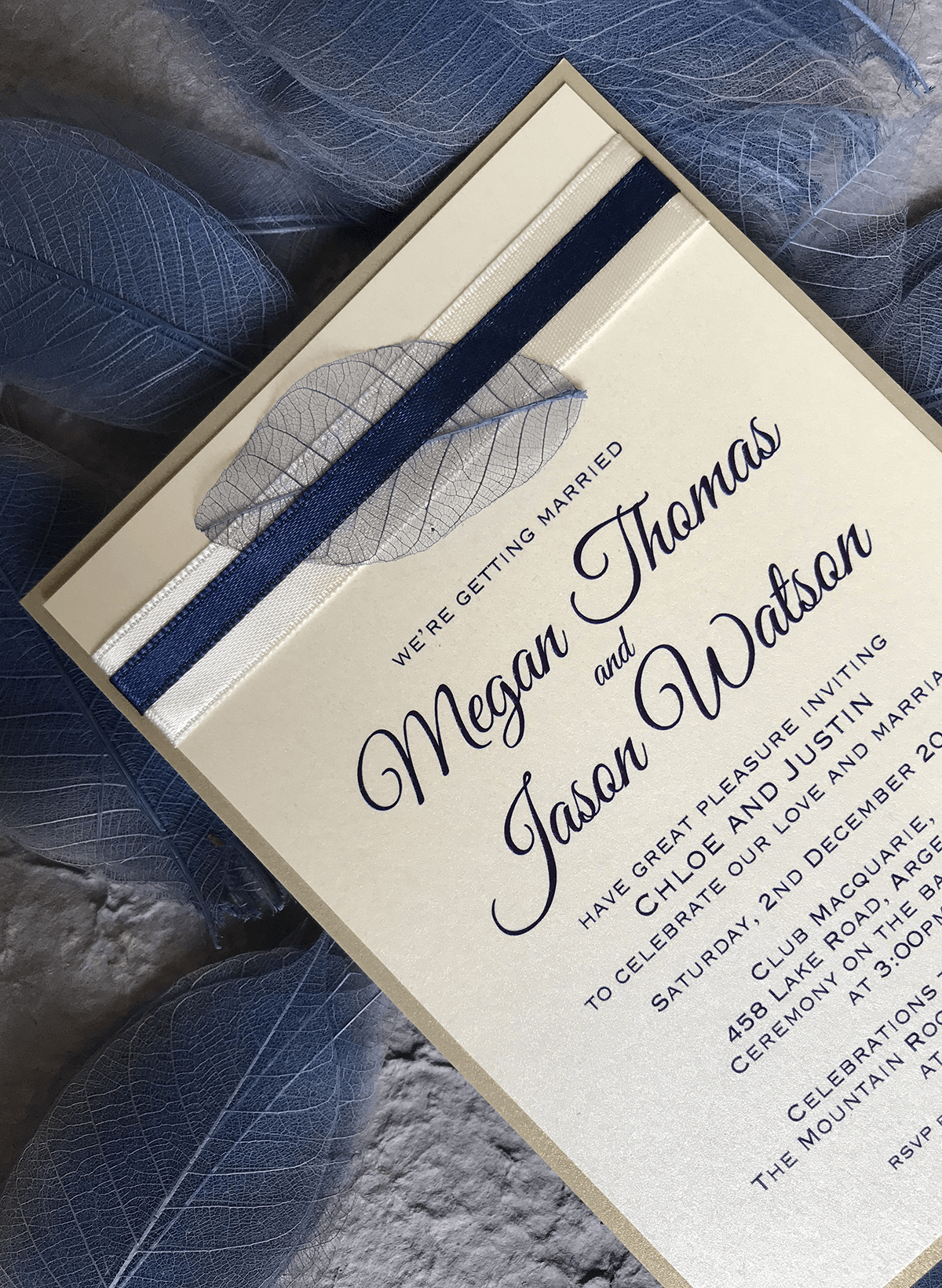 Photograph of Samantha & David’s stationery taken by the talented Gavin Cato.